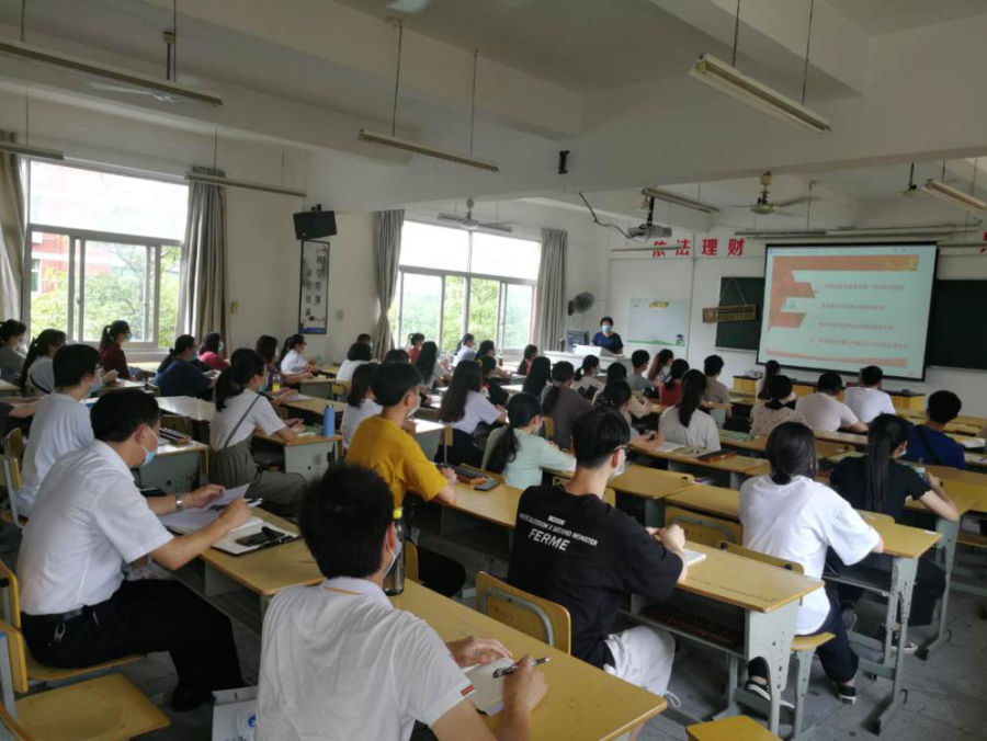 2020年6月21日下午,思政部陈丽萍老师在工商楼402教室为会计181学生开了一场“疫情大考彰显中国特色社会主义制度优势”这一专题内容讲座。学院党委副书记林鹤柱、思政部副主任郑秀明和办公室陈文高老师一起来到班级听讲。