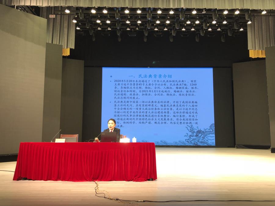 黄珊珊副庭长是我市一位资深法官,从事民事审判工作十余年,工作经验丰富,曾荣获福建省“十佳法官"、福建省“五一劳动奖章"等荣誉称号。报告会上,黄副庭长深入阐释民法典的立法背景以习总书记关于民法典的重要论述,并运用通俗易懂的语言和典型案例,着重对民法典的主要内容做了深入浅出的解读和阐释,尤其是对高空坠物、离婚冷静期、校园贷、网络诈骗等当前社会关注的热点内容进行了重点阐述。