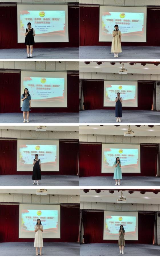 本场党史故事宣讲会由助产2001、2002班的16位同学轮番上台宣讲。她们个个饱含深情,运用生动活泼、接地气的语言,为师生们讲述那些震撼人心的党史故事,仿佛带回到那段曲折前进的血泪史、震撼人心的奋斗史。