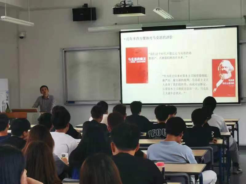郑老师先从当代西方名人及媒体对马克思及《共产党宣言》的评价导入,接着介绍《共产党宣言》的写作背景及主要观点,最后介绍《共产党宣言》的现实意义,号召大家学习革命导师马克思、恩格斯他们胸怀天下,为人类幸福而奋斗的崇高品质,学习马克思主义的科学理论,增强“四个意识”,坚定“四个自信”,为实现中华民族的伟大复兴奉献自己的青春热血。