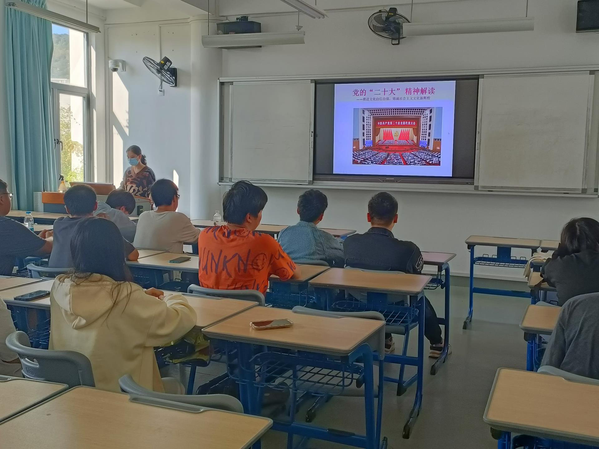 学习宣传贯彻党的二十大精神,是当前和今后一个时期的首要政治任务。为深入推进党的二十大精神进教材、进课堂、进头脑,让党的二十大精神直抵学生内心,2022年11月10日下午马克思主义学院张冰霜老师在公教一北205为数字媒体技术2201的同学们作了题为“推进文化自信自强,铸就社会主义文化新辉煌”宣讲报告。