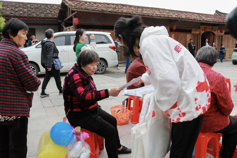志愿者们在活动现场摆放宣传海报,张贴横幅,并为在场的嘉宾和村民们发放宣传资料与小礼品,耐心讲解“什么是自闭症”、“自闭症的发病原因是什么”等常识,呼吁人们更加关注自闭症,特别是关注自闭症儿童,争取早期治疗积极干预,让这些“星星的孩子”走入人间,不再孤独。