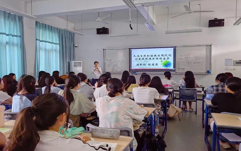 为了让同学们更加深刻学习和掌握习近平新时代中国特色社会主义思想,更好地领会党的二十大精神,10月26日,陈建清老师以主题班会的形式,为学生作了一场主题为《人与自然和谐共生现代化对全球环境治理的启示》的宣讲。