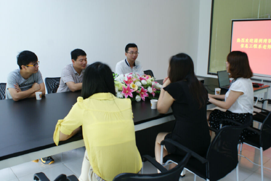安博福州负责人陈经理介绍了其服务外包实训基地的情况,并分享了她在实践教学、就业指导方面的诸多真知卓见。安博王教师还介绍了公司在大连的实训实习基地。双方还就下学期我院12级“安博班”即将赴昆山实训基地毕业实训等事宜进行了交流。我院与安博教育集团共建的“软件外包学院”也在积极申报中,有望双方的进一步深化合作。