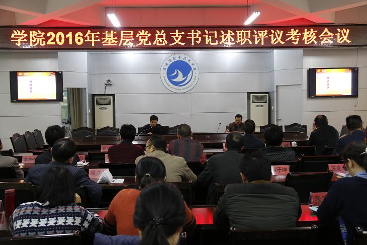 12月27日上午,我院召开基层党总支书记党建述职评议考核会议。学院党委副书记、纪委书记施春耀,副院长陈金毓,各职能部门负责人,系(院)领导班子成员,教辅机构书记以及党员代表参加会议,会议由党委工作部郑庆彬部长主持。