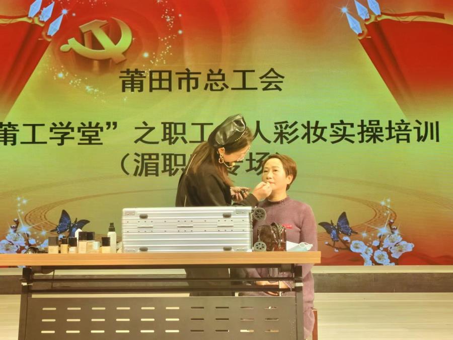 化妆界达人、具有12年美妆资历的林林化妆师还为全体女教职工带来个人彩妆实操培训。