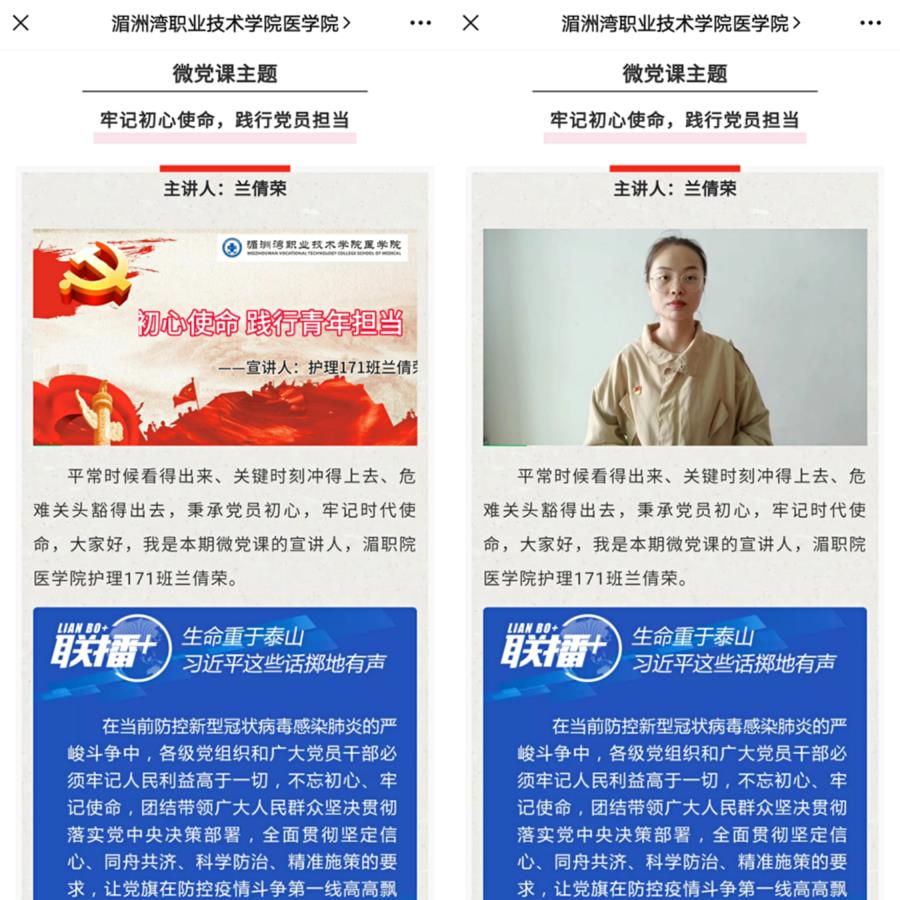 平常时候看得出来、关键时刻冲得上去、危难关头豁得出去,秉承党员初心,牢记时代使命,大家好,我是本期微党课的宣讲人,湄职院医学院护理171班兰倩荣。