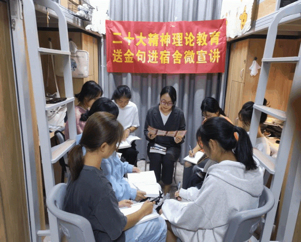 以“一站式”学生社区建设试点工作为契机,突出思政辅导员“思政育人”职能,夯实“三全育人格局”。医学健康系开展“党的二十大精神进社区,跟党走凝聚新共识”学生社区活动,聚焦党的二十大会议精神,“医”同赞颂二十大,“医”启畅想新时代。让同学们在宿舍里学习知识、了解党的政策,让党的二十大精神走进每个同学的心里。