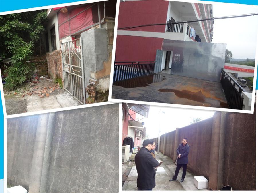 为进一步加强学院期末安全工作,2016年1月13日下午,后勤管理处与保卫科联合针对校园基础设施和师生食堂进行期末安全隐患排查,发现安全隐患如下:博爱公园体育健身器材损坏;新区学生宿舍5#与6#楼二层走廊交界处铁板积水;新区学生宿舍5#与6#楼南侧围墙向外倾斜切墙体出现三处裂缝。根据隐患排查结果进行集中评议,提出整改方案,确定由后勤处派员专门负责,及时整改。