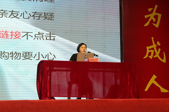 林队长提醒同学们网络世界与现实世界一样存在着秩序,网在其中,违反秩序,就会超出法律底线,让“网事”不堪回首。