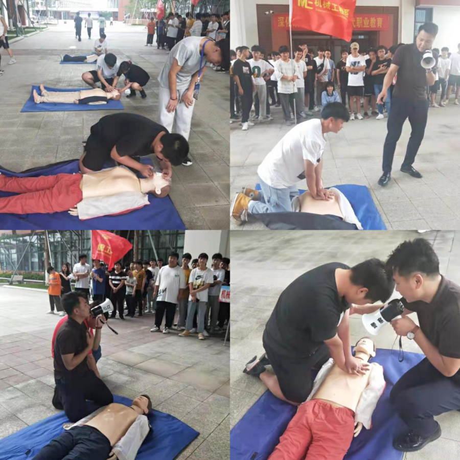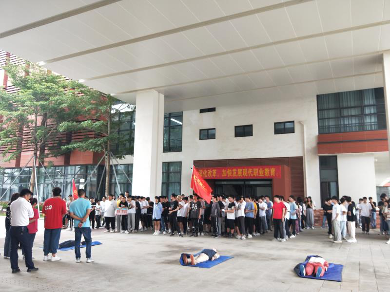 活动在保卫科陈荔春老师的主持下,首先由建筑工程系范健健老师演示如何正确进行心肺复苏,他先向大家介绍了心肺复苏的重要性,并演示了如何正确进行心肺复苏以达到有效且快速地抢救病人,在场学生纷纷上台进行实地操作。随后,物业主任助理庄菊阳为大家讲解、演示了灭火器的使用方法。并指导同学们正确使用灭火器。最后,老师与学生代表们一道前往地震体验馆参观,了解地震原理和避险技巧。
