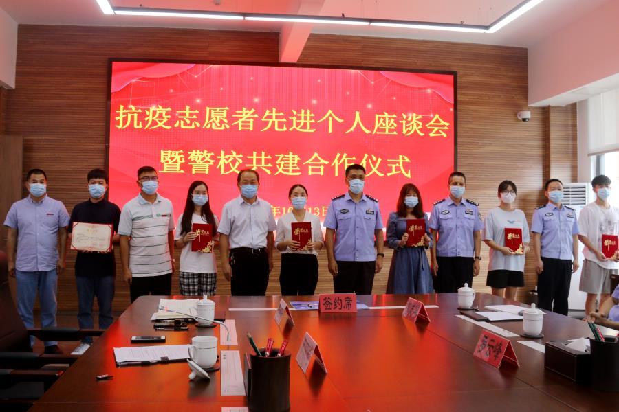 随后,警校双方为学院抗疫志愿者先进个人颁发证书,并共同签署“警校共建”合作协议、双方互赠牌匾。