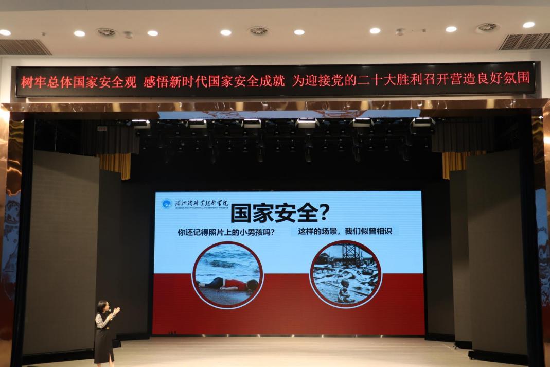 讲座过程中,陈丽娇老师以“国家安全是什么?”开题与现场学生互动交流,深入浅出地介绍了《中华人民共和国国家安全法》的立法背景与特点,强调安全法是逐步推进国家安全教育的坚实基础和制度保障,是立足全局、统领国家安全各领域的基础性、全局性、综合性的法律,对维护我国国家安全具有积极作用,同时通过讲解国家安全教育与青年学生的关系,教导我院师生应树立国家安全意识,筑牢国家安全防线,倡导“国安方能家安,国家安全,重于泰山,维护国家安全,人人都不应置身事外,作为新时代的青年,更应主动承担起维护国家安全的责任和义务,坚持总体国家安全观,将维护国家安全内化于心、外化于行”。