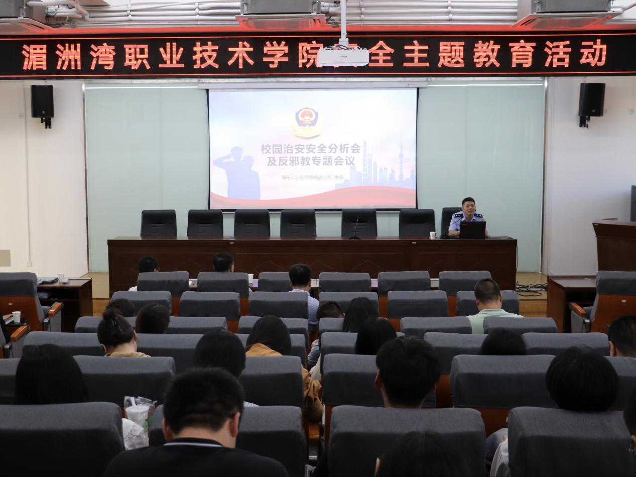 为增强安全防范意识,提升师生安全素养,10月25日,湄洲湾职业技术学举办安全主题教育活动,邀请涵江交警大队、梧塘派出所做交通安全、校园治安安全分析以及反邪教专题会议。各院系书记、学工办主任、教师安全员、全体辅导员、安全保卫处工作人员及学生代表参加会议。